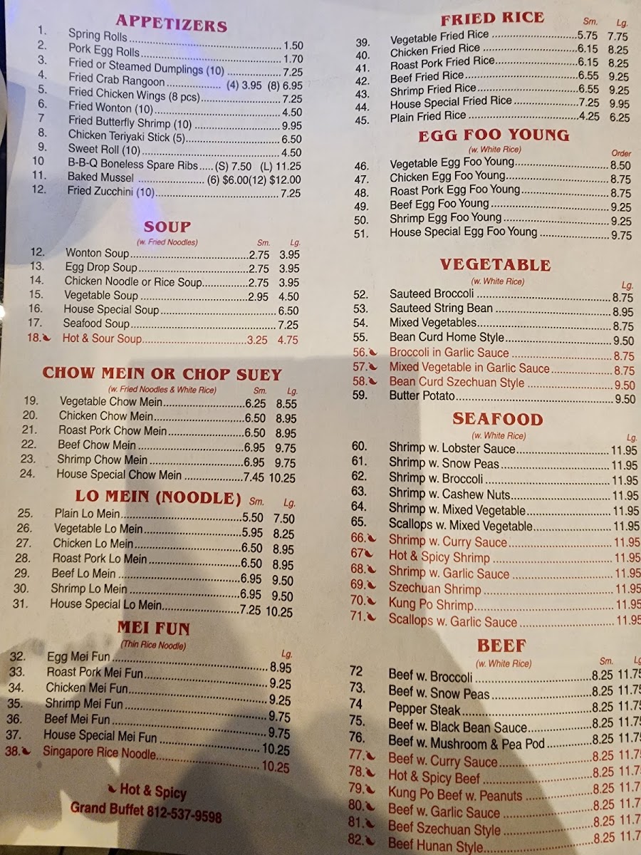 Grand Buffet - Lawrenceburg Menu